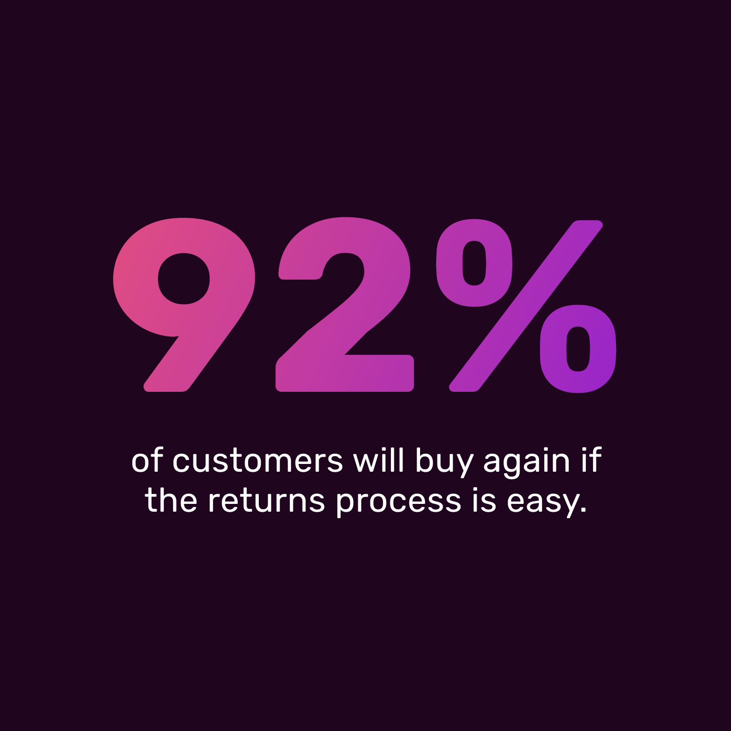 A strong returns process = increased customer retention. Research consistently shows that customers who trust a brand’s returns policy are more likely to purchase again.